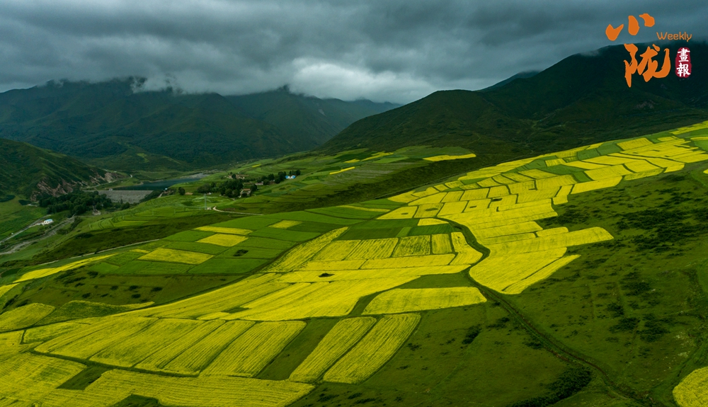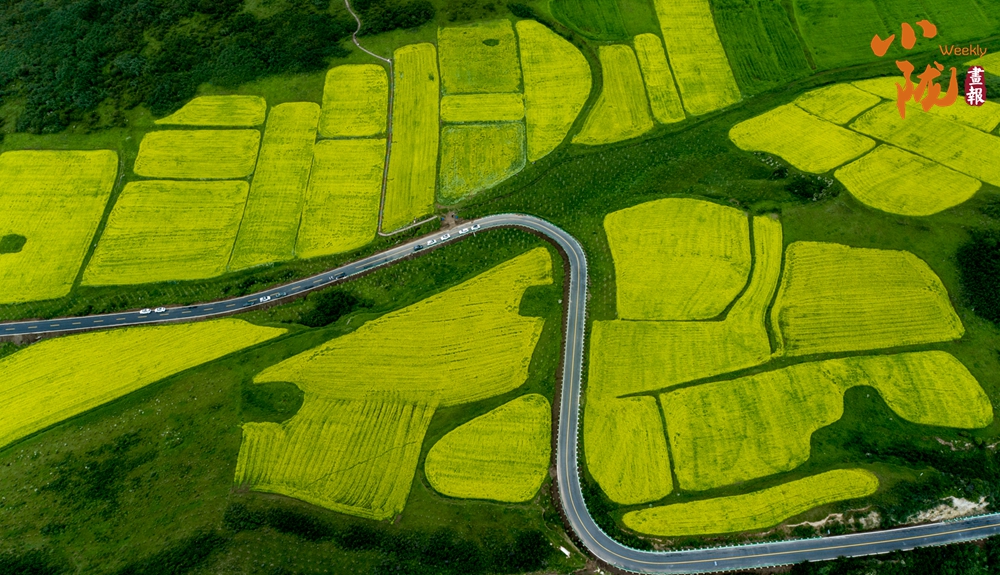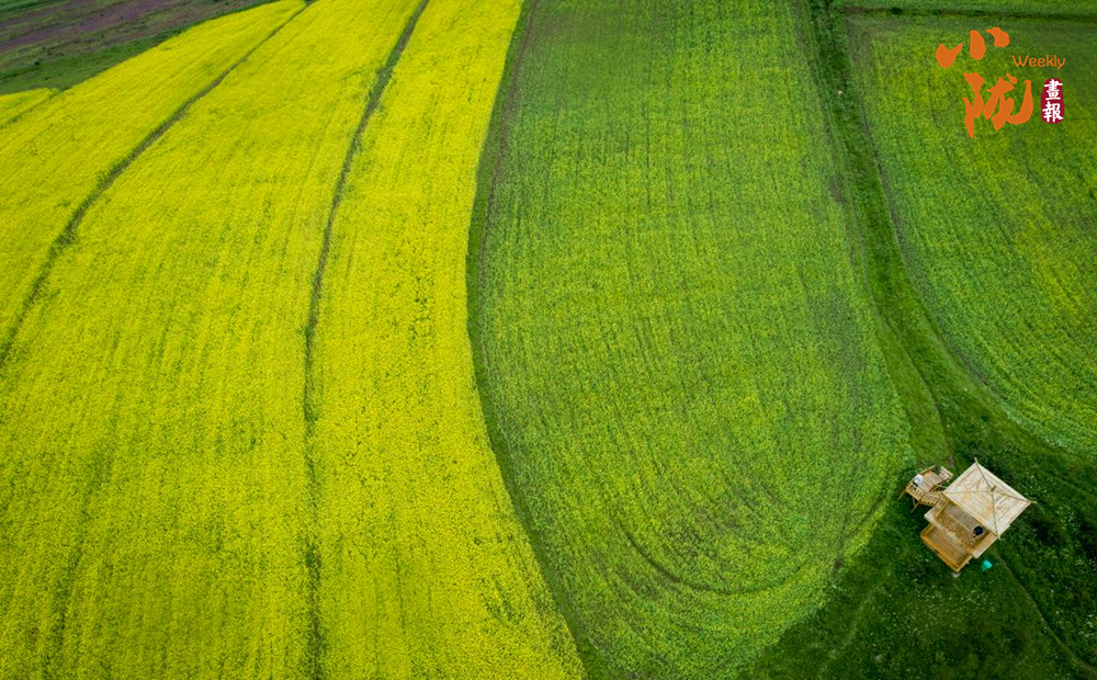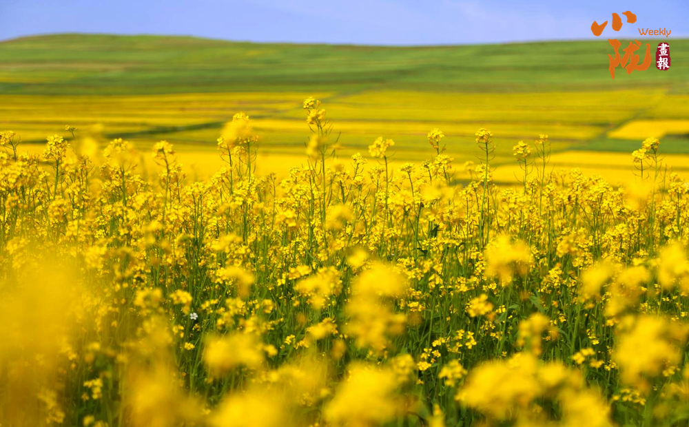 黃燦燦的油菜花鋪蓋在逶迤的山坡上,染盡山野,與此起彼伏的祁連山脈、古樸的民舍、一望無(wú)際的田野,共同繪就了一幅極具藝術(shù)感的“油畫”。