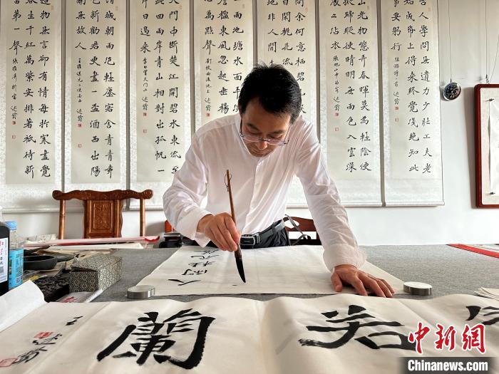 “我從小練習(xí)繪畫,從學(xué)校畢業(yè)后直接回縣里開(kāi)了自己的書畫工作室,現(xiàn)在入駐悅心國(guó)際書畫村,收入還可以。最主要耐得住寂寞,靜下心來(lái)打磨技藝。”“90后”通渭本土?xí)嫾伊茉诋?dāng)?shù)匦∮忻麣?。他說(shuō),書畫在年輕群體當(dāng)中很受歡迎,尤其前來(lái)跟他學(xué)習(xí)的學(xué)生很多。(完)