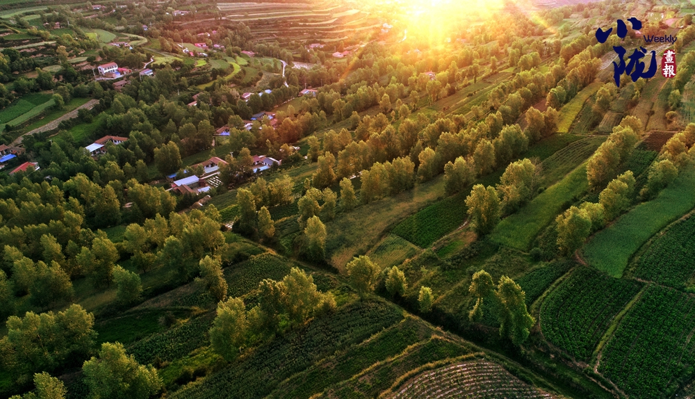 農(nóng)田與村莊、河流、綠樹交相輝映,與晨光交織在一起,形成一幅溫馨的畫面。此時(shí)的村落,靜謐而祥和。