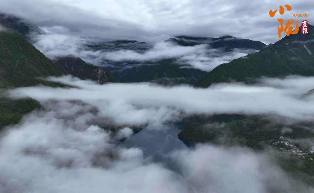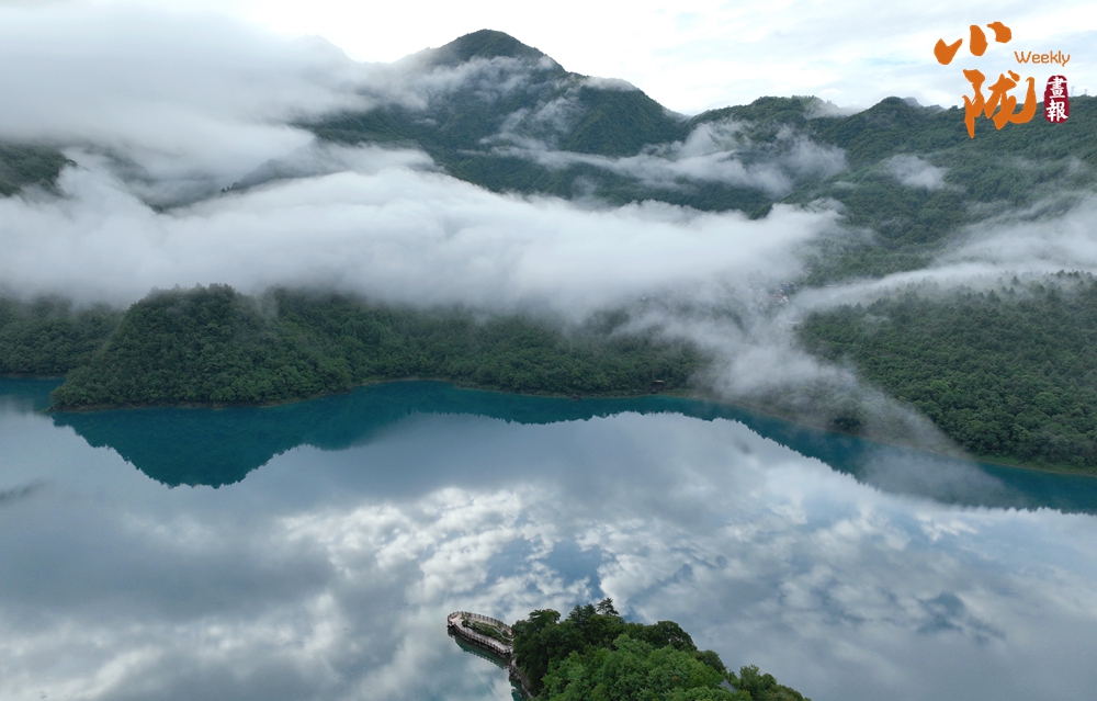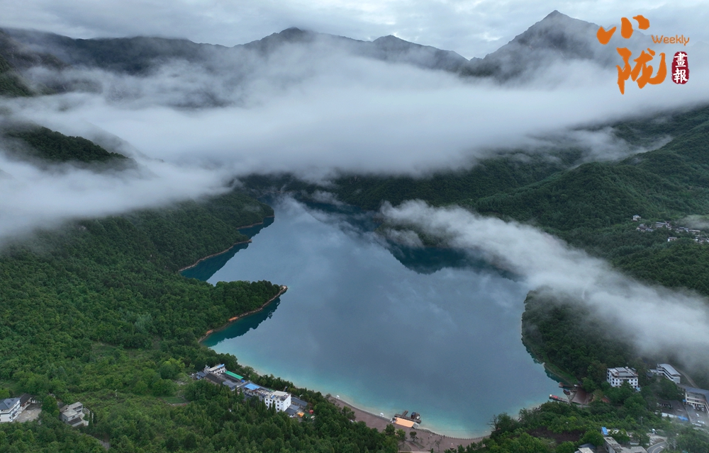 雨后,文縣天池云霧繚繞,翠綠的山巒、碧綠的湖水,相互輝映,美輪美奐,宛若仙境。