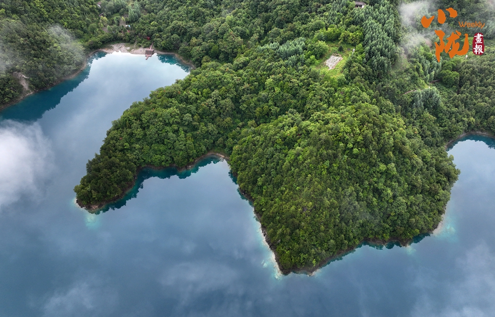 兩岸種類繁多的茂密植被、清澈如玉的湖水和霧遮云繞的奇峰構(gòu)成一幅山水畫卷。