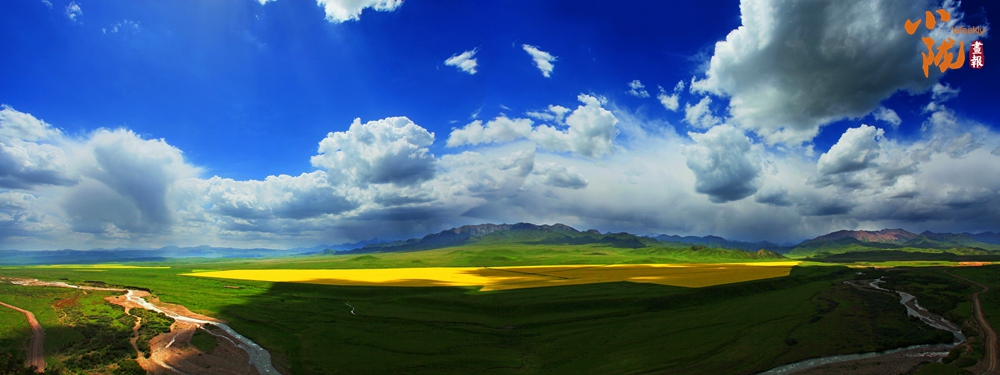 祁連山北麓的扁都口,大片的油菜花夾雜著一塊塊碧綠色的青稞,高低起伏,綿延無窮,放眼望去,像金黃色的花海,身處此景,仿佛又回到了美麗的春天。