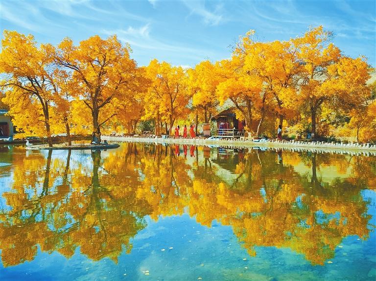 層林盡染的興隆山國(guó)家級(jí)自然保護(hù)區(qū),紅黃綠相間、滿目絢麗、美不勝收;置身在民樂(lè)縣西區(qū)公園,近可抬眼觀紅葉,遠(yuǎn)可舉目望雪山,天如洗,湖如鏡,令人心曠神怡;以壯麗胡楊林景觀聞名遐邇的阿克塞縣胡楊峽景區(qū),金黃色的葉片在陽(yáng)光下閃閃發(fā)光,形成一道亮麗的風(fēng)景線;在蔚藍(lán)天空的映襯下,秋日的陽(yáng)關(guān)遺址更顯雄渾肅穆;暖陽(yáng)下,旅客乘坐蘭張高鐵出行,欣賞秋天饋贈(zèng)的每一道風(fēng)景……