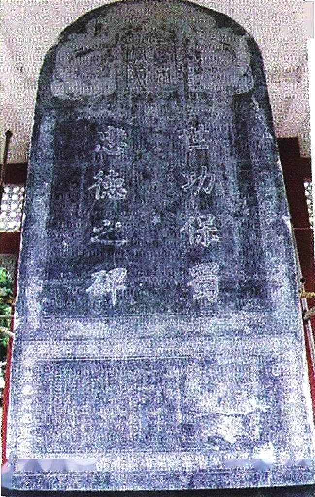 碑陽額刻二龍圖,篆“皇帝宸翰”,字徑0.22米,碑身刻宋寧宗書“世功保蜀忠德之碑”八字,楷書豎行2行,行間刊有篆書“敕令寶璽”和楷書“修政殿書”八個小字,四周環(huán)刻八龍騰云圖。碑文刻吳挺之子吳曦自記《感恩表記》,碑文楷書計8461字,內容記載吳氏三代抗金保蜀的功績。