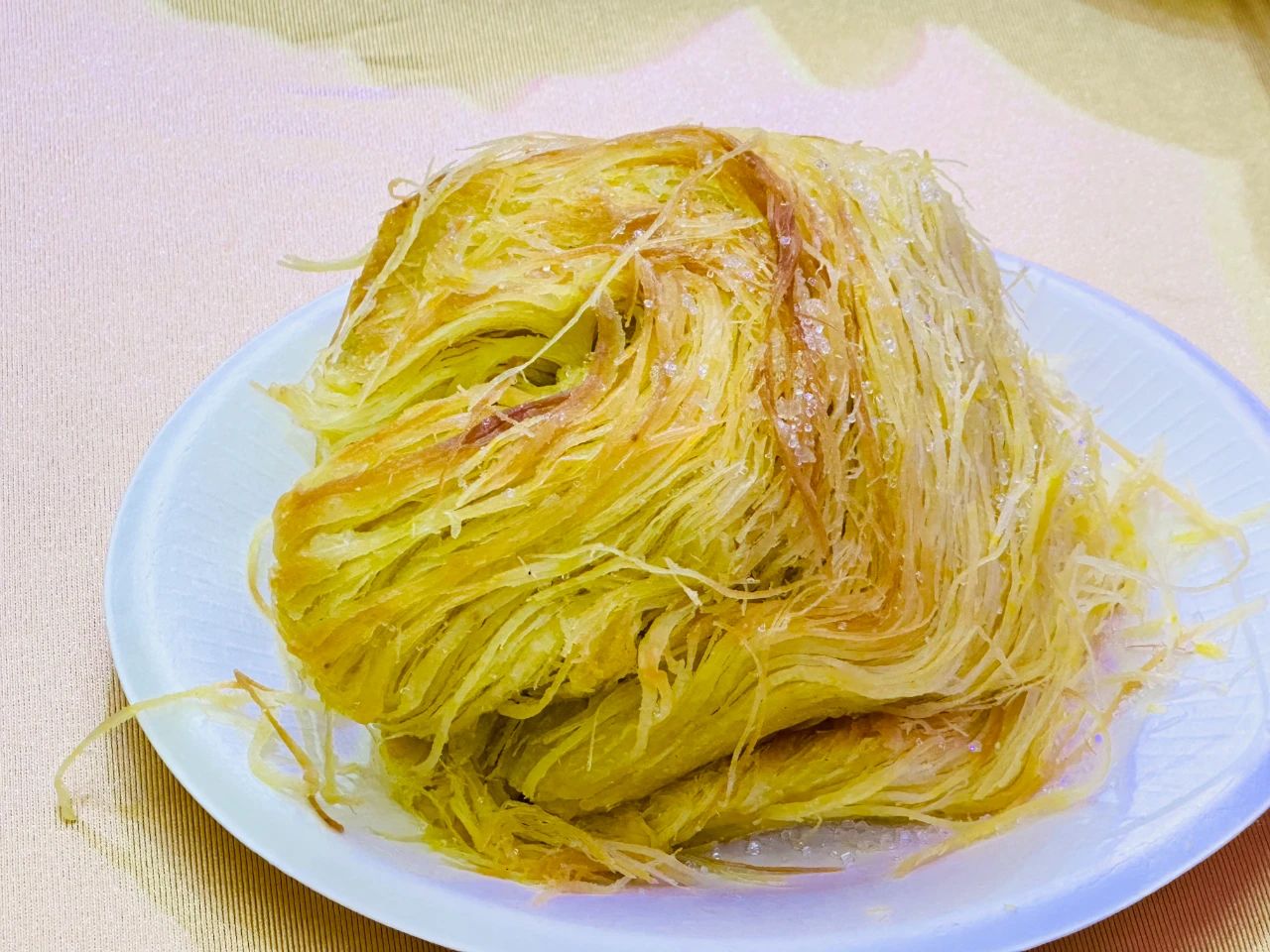 一窩絲的制作是一門精細的藝術(shù)。面粉、水、鹽和油巧妙混合,揉成光滑面團后,反復(fù)地拉伸、對折,直至那面團細如發(fā)絲,再盤成一團放入烤箱中,逐漸變得金黃酥脆。吃起來,那口感是層層疊疊的酥,帶著淡淡的油香,每一根絲在齒間斷裂,釋放出獨特的風(fēng)味。