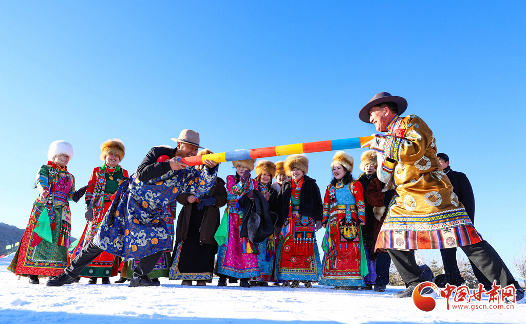當天,來自新疆、內蒙古等地的3000多名游客,和當?shù)夭刈?、裕固族、蒙古族群眾一起參與了雪地拉爬牛、頂杠子、冰上漂移、摔跤、雪地千人鍋莊舞等冰雪活動和民族特色體育項目,迎接2025新年的到來。