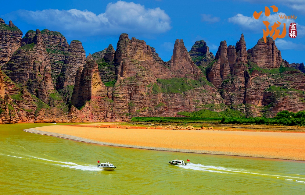 黃河三灣的河水波光粼粼,清澈透明,仿佛一塊晶瑩的藍(lán)寶石鑲嵌在大地母親的懷抱中。在藍(lán)天白云的映襯下,河水微波蕩漾,水天相連,水鳥嬉戲,顯得分外恬靜美麗,這種美景四季皆然。