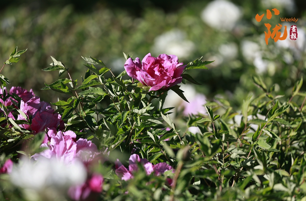 陽(yáng)光照射下,牡丹粉的如霞,嬌艷柔美;白的像雪,純凈典雅,還有紫、黃等多種色彩相互交織,花朵碩大且花瓣層層疊疊,在微風(fēng)中輕輕搖曳,散發(fā)出陣陣淡雅的清香,讓人陶醉其中。