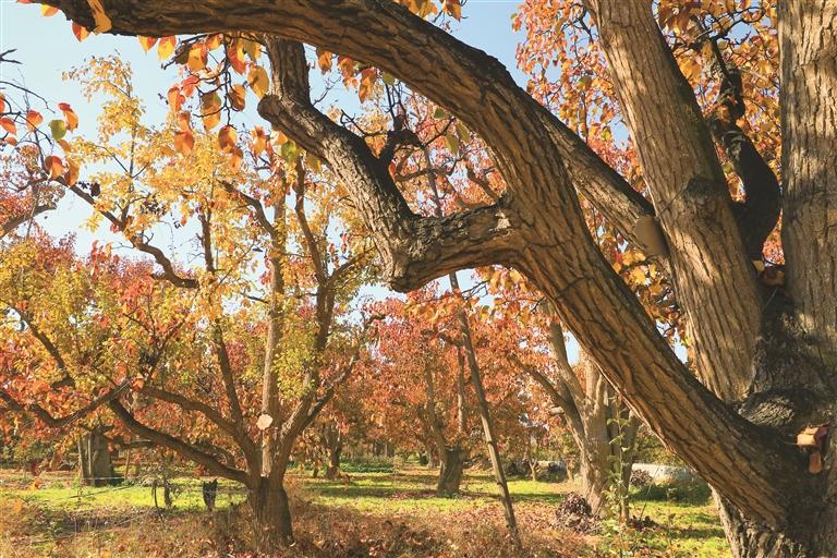 “這是我們梨園的‘樹王’,今年475歲了,歷經(jīng)歲月洗禮,每年仍能產(chǎn)出2000斤冬果梨。”古梨園保護中心副主任韓磊告訴記者,“現(xiàn)在每棵古樹都有專屬‘保姆’,比我們小時候受寵多了。”