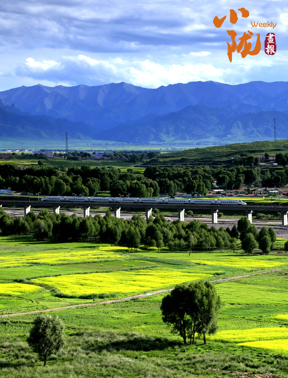 綠浪在鐵軌兩側(cè)翻涌,演奏著夏日歡快的音符,銀色列車(chē)如琴弦穿過(guò)田野,指揮著這場(chǎng)盛大的樂(lè)曲。這里的每一寸土地似乎都披上了一層華麗的金色外套,宛如世外桃源。濃郁的花香令人陶醉,壯美的風(fēng)景令人禁不住手舞足蹈,引吭高歌,流連忘返。