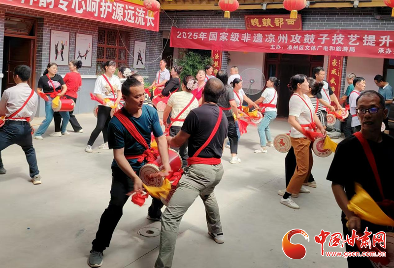 中國甘肅網(wǎng)7月19日訊(西北角·中國甘肅網(wǎng)記者 張振國 文/圖)為扎實(shí)推進(jìn)國家級非物質(zhì)文化遺產(chǎn)項(xiàng)目傳承與保護(hù),系統(tǒng)提升涼州攻鼓子團(tuán)隊(duì)專業(yè)水平,發(fā)展壯大攻鼓子傳承人隊(duì)伍。7月16日,由涼州區(qū)文體廣電和旅游局主辦、涼州區(qū)文化館承辦的2025年涼州攻鼓子傳承人技藝提升培訓(xùn)班分別在“涼州攻鼓子傳習(xí)所”和“四壩鎮(zhèn)非遺民俗文化館”開班。