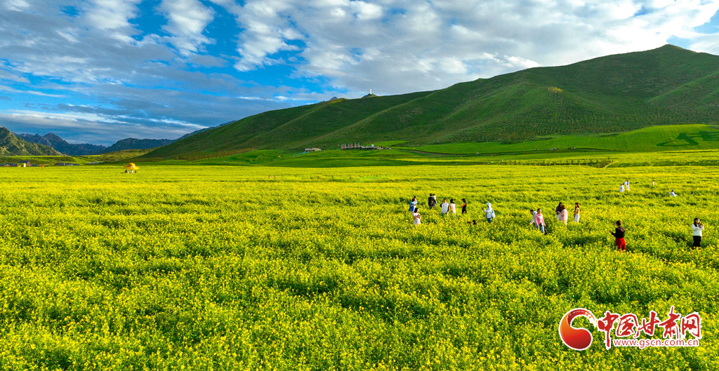 7月19日,張掖市民樂縣扁都口景區(qū)萬畝油菜花盛放。金黃的花海如巨毯鋪展,與草原綠野相接。微風輕拂,花浪層層涌動,空氣中彌漫著淡淡清香。藍天白云映襯下,景致美不勝收,成為河西走廊一道別致風景,吸引了眾多游客前來觀光。