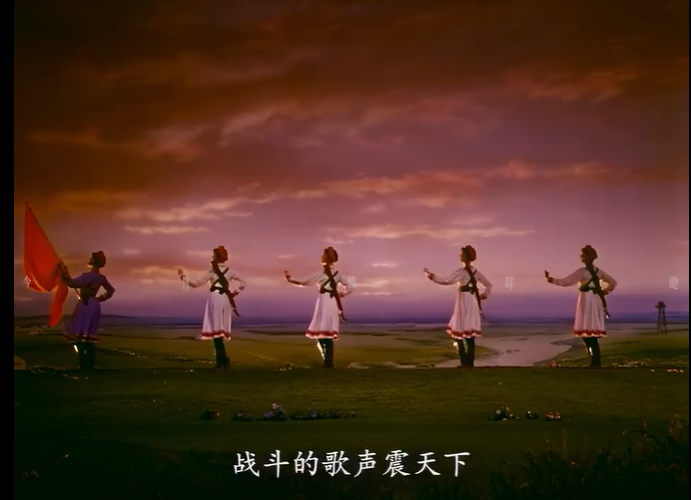 現(xiàn)在,就讓我們循著光影的指引,走進(jìn)今天的作品——《草原女民兵》,見證《百花爭(zhēng)艷》賦予它的新生與永恒。