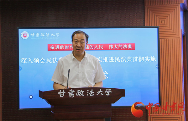 中國(guó)甘肅網(wǎng)7月9日訊 (本網(wǎng)記者 彭曉姣)7月8日,甘肅政法大學(xué)召開(kāi)“深入領(lǐng)會(huì)民法典核心要義,切實(shí)推進(jìn)民法典貫徹實(shí)施”理論研討會(huì)。研討會(huì)的主旨是深入貫徹落實(shí)習(xí)近平總書(shū)記關(guān)于“切實(shí)實(shí)施民法典”的重要講話精神,為甘肅省有效實(shí)施民法典、不斷完善民商事法律制度提供理論支撐。