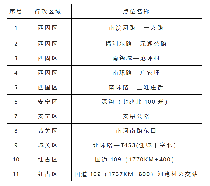 以下為11處非現(xiàn)場執(zhí)法系統(tǒng)抓拍點位: