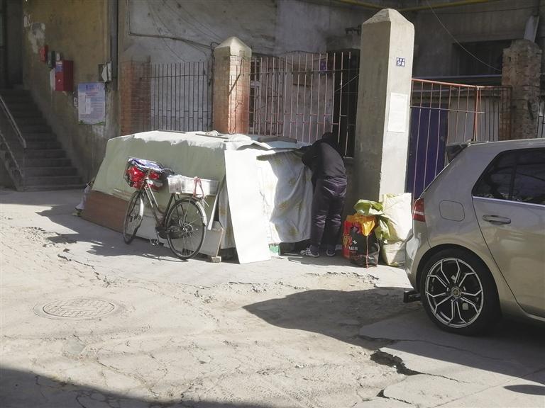 隨后,記者來到閔家橋59號(hào),破舊的小區(qū)內(nèi)堆積的雜物很多,有人堆積紙箱,有人干脆在小區(qū)院子內(nèi)“圈地”堆放私人物品。“不知道人家在堆放什么,可是進(jìn)門就能看見,很不雅觀。”居民李先生說,小區(qū)是老舊樓院,長期沒人管理,衛(wèi)生環(huán)境雖然不差,但是小區(qū)內(nèi)堆積的東西太多。小區(qū)里有一個(gè)收廢品的,每天將回收來的紙箱堆積在單元樓門口,另一戶人家干脆“圈地”將自家的私人物品堆放在這里,用塑料布遮蓋起來,很不美觀。