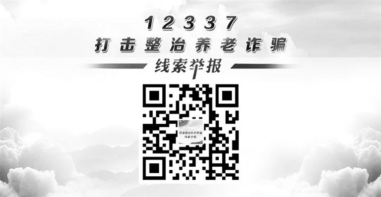 為廣泛接收群眾舉報線索,嚴厲打擊假借養(yǎng)老之名實施詐騙的違法犯罪行為,依法保護老年人合法權益,中央政法委在12337智能化舉報平臺開通了“打擊整治養(yǎng)老詐騙”舉報通道,群眾可通過掃描右側二維碼,登錄12337智能化舉報平臺反映問題。同時,還可通過撥打110報警電話等渠道,反映涉及養(yǎng)老詐騙違法犯罪等相關問題線索。