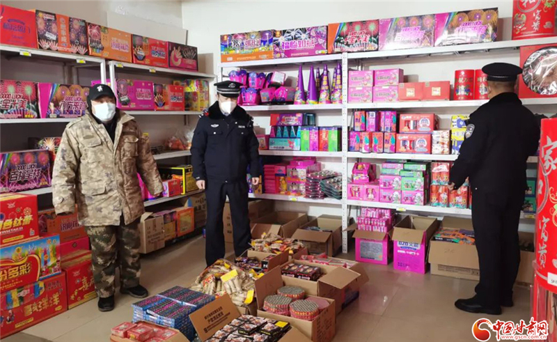 鎮(zhèn)原縣公安局城關派出所民警對轄區(qū)煙花爆竹銷售點、儲存庫區(qū)開展安全檢查