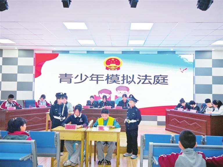 首先,在李青源律師的悉心指導(dǎo)和同學(xué)們的踴躍參與下,經(jīng)過前期的認真彩排,同學(xué)們以模擬法庭的形式現(xiàn)場模擬了一起因校園欺凌導(dǎo)致的刑事訴訟案件。參與庭審活動的學(xué)生們沉浸式、體驗式、互動式參與其中,有序扮演著審判長、公訴人、辯護人等角色?;顒右沧屧趫龅钠渌瑢W(xué)認識學(xué)習(xí)了法庭審判的全過程,身臨其境感受了校園欺凌會產(chǎn)生的嚴重后果,以及法律的威嚴,引導(dǎo)青少年學(xué)會用法律保護自己。