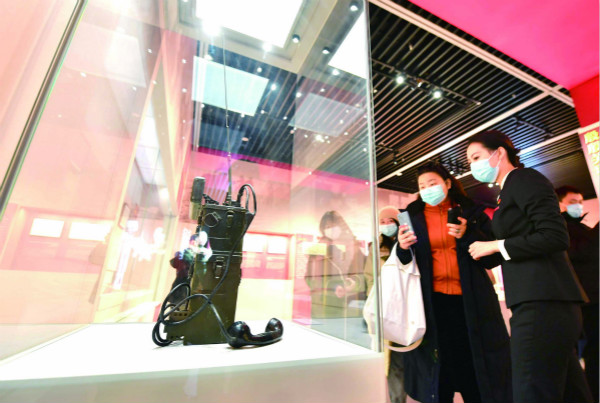 日前,“紅色電波中的領(lǐng)袖風(fēng)范——毛澤東同志香山時(shí)期發(fā)布電報(bào)手稿”專題展覽在北京香山革命紀(jì)念館舉行。圖為觀眾在觀看拍攝展出的電臺(tái)。(圖片來源:人民視覺)