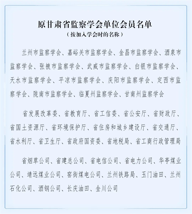 原甘肅省監(jiān)察學會已于2024年5月更名為“甘肅省紀檢監(jiān)察協(xié)會”。為推動更名換屆后的甘肅省紀檢監(jiān)察協(xié)會輕裝上陣,更好服務紀檢監(jiān)察工作大局,按照協(xié)會第五屆理事會第二次會議精神,決定對原甘肅省監(jiān)察學會個人會員和單位會員進行清理,現(xiàn)就有關事項公告如下: