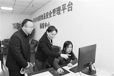 河南省許昌市紀(jì)委監(jiān)委堅(jiān)持標(biāo)本兼治,通過分域?qū)嵤?、系統(tǒng)推進(jìn),整合監(jiān)督力量、提升基層監(jiān)督效能。圖為近日,該市紀(jì)委監(jiān)委駐市教育局紀(jì)檢監(jiān)察組干部在市教育局了解校園食品安全管理平臺(tái)運(yùn)行及監(jiān)管情況。牛原 攝