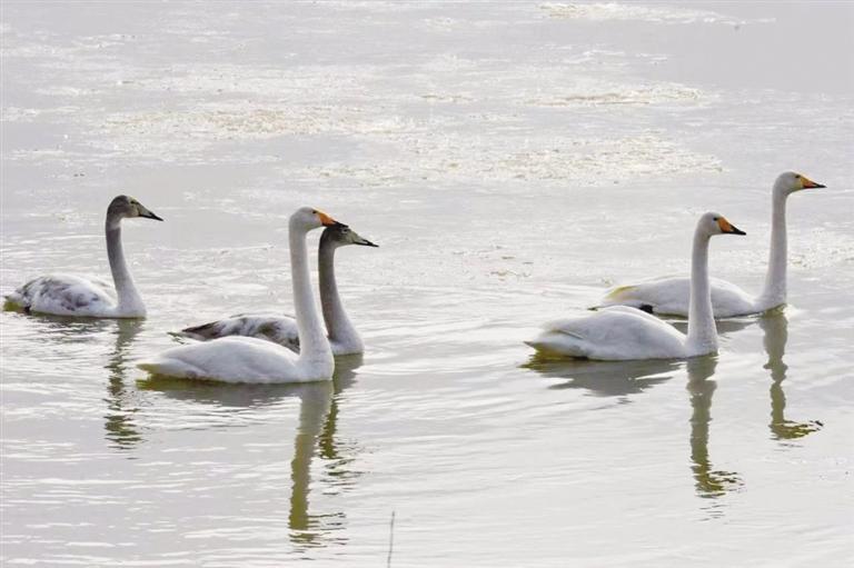 中國甘肅網(wǎng)1月7日訊 據(jù)蘭州日報報道記者 董永前 攝)最近幾天,西固區(qū)達川鎮(zhèn)三江口水域,成群天鵝在這里“落戶安家”,成為當?shù)匾患恍〉男侣?,吸引不少市民和游客前來觀賞。