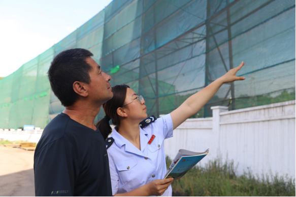 稅務(wù)干部在華星煤業(yè)有限責(zé)任公司了解防風(fēng)抑塵裝備改造情況