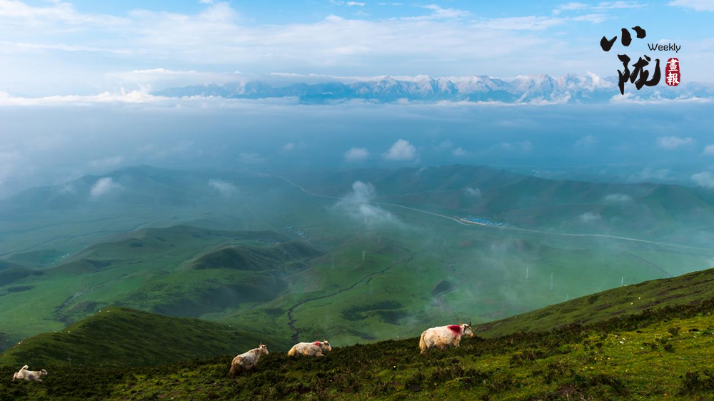 山頂被譽(yù)為草原白珍珠的天祝白牦牛和羊群云中漫步,云下蔥蘢牧場若隱若現(xiàn),一幅水墨山水畫卷徐徐呈現(xiàn)在眼前。