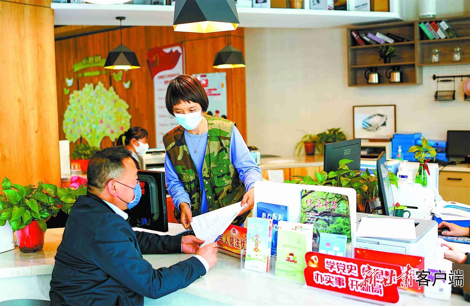 蘭州市城關(guān)區(qū)白銀路街道甘家巷社區(qū)全科受理臺(tái)上,社區(qū)工作人員熱情解答辦事群眾提出的問題。