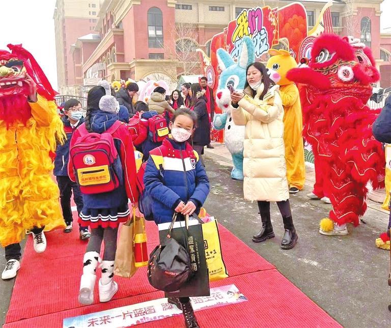 氣球、棒棒糖、筆記本……每一份開學小禮物都蘊藏著老師們深深的祝福和殷切的期望,打開這份開學禮,五彩斑斕的新學期已經(jīng)畫下了濃墨重彩的第一筆。猜燈謎、寫春聯(lián)、做花燈、觀看太平鼓表演、舞獅子、趣味套圈、扭秧歌……多姿多彩的迎接活動,將傳統(tǒng)文化與有益的游戲結(jié)合起來,營造出愉悅的開學氛圍。