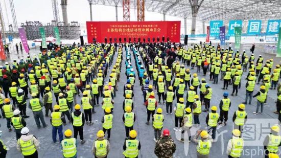 2月18日,蘭州中川國際機(jī)場三期擴(kuò)建工程航站樓工程主體結(jié)構(gòu)合攏活動暨沖刺動員會在甘肅蘭州新區(qū)舉行。圖為活動現(xiàn)場。 中新社記者 九美旦增 攝