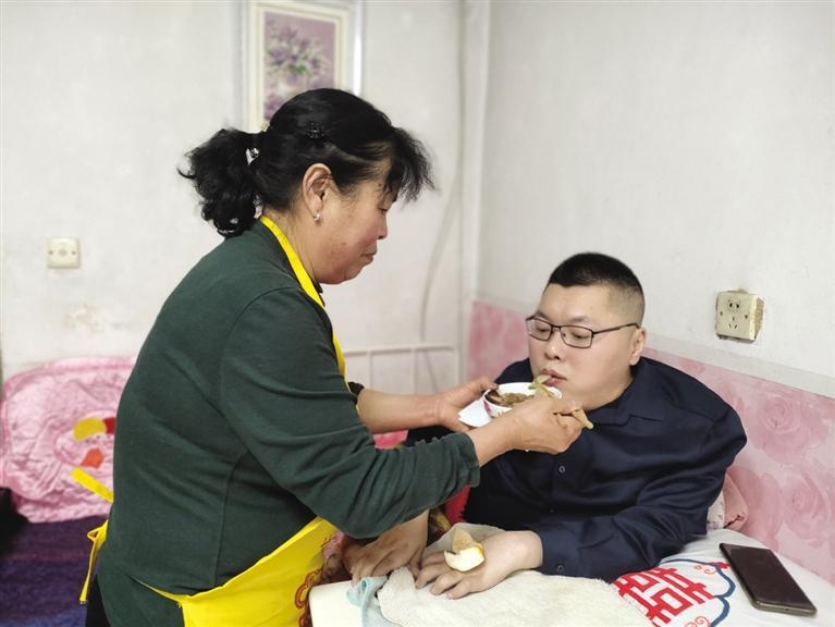 轉(zhuǎn)眼間,呂元明馬上要過18歲的生日了,一家人如臨大敵。2001年5月28日,呂元明18歲的生日如約而至。睡夢中,呂元明睜開眼睛,眼前是一片白,僵硬的身體限制住了他的行動,他只是不停地眨著眼睛,反復(fù)確認自己“是不是還活著”。思考間,他的疑慮被母親打消了,母親依舊抱著他洗臉、上廁所、喂飯……他在母親的幫助下完成起床后的一系列“程序”,“18歲后的每一分每一秒,對我來說就是一個‘奇跡’!”呂元明說。