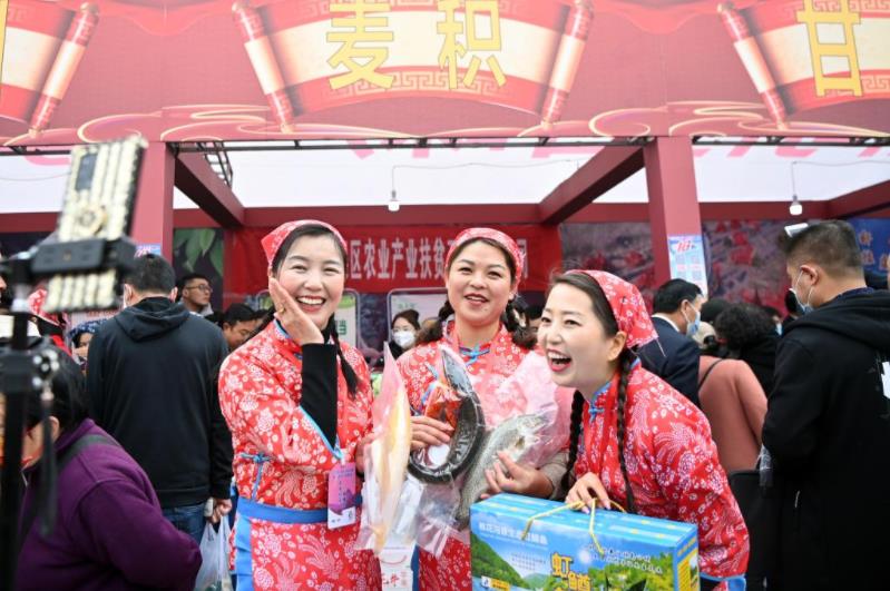 3月17日,“村花”直播團(tuán)直播帶貨,助力“甘味”產(chǎn)銷。當(dāng)日,甘肅省“田間行甘味產(chǎn)銷季”暨“云品甘味”促消費(fèi)活動(dòng)啟動(dòng)儀式在主會(huì)場(chǎng)天水市舉行。