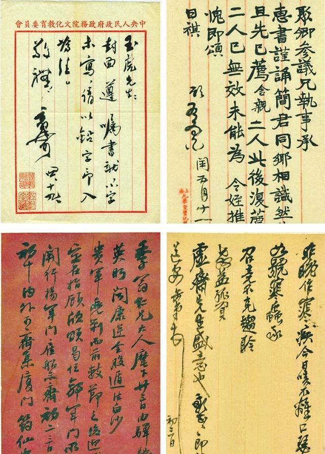 本次展覽共展出中國(guó)近現(xiàn)代50多位名人的信札墨跡共計(jì)100多通。信札作者匯聚了清朝末期到民國(guó)初期政治、經(jīng)濟(jì)、軍事、宗教、文學(xué)藝術(shù)等領(lǐng)域著名人物,如吳昌碩、沈鈞儒、弘一法師、康有為、傅雷、郭沫若、吳湖帆、老舍、茅盾等,每一個(gè)作者都曾在中國(guó)近現(xiàn)代史上留下過濃墨重彩的一筆。