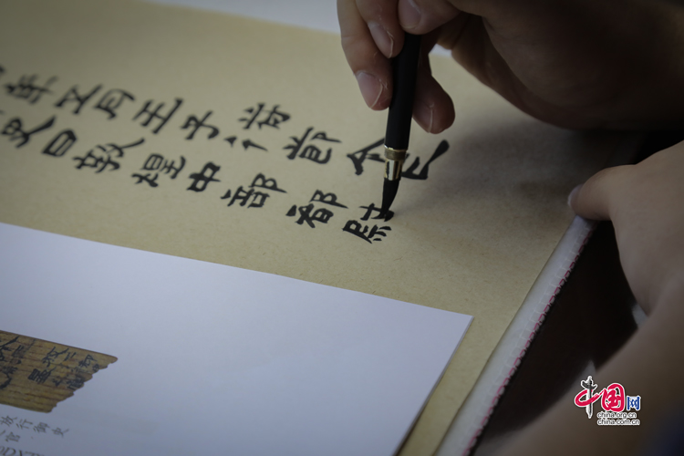 7月31日,蘭州大學古文字學強基計劃同學正在臨摹簡牘。中國網記者 鄭偉 攝