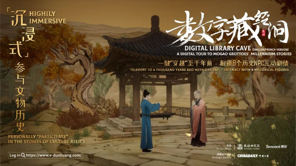 敦煌藏經(jīng)洞是20世紀(jì)最重要的考古大發(fā)現(xiàn)之一,曾出土6萬(wàn)余件古代文獻(xiàn)和藝術(shù)品,被譽(yù)為“打開(kāi)世界中世紀(jì)歷史的鑰匙”。基于藏經(jīng)洞出土文物和敦煌石窟等相關(guān)研究,敦煌學(xué)逐漸成為一門(mén)“國(guó)際顯學(xué)”。一直以來(lái),敦煌研究院致力于聯(lián)動(dòng)社會(huì)力量,利用現(xiàn)代數(shù)字技術(shù)推動(dòng)文化遺產(chǎn)數(shù)字化和弘揚(yáng)優(yōu)秀傳統(tǒng)文化。“數(shù)字藏經(jīng)洞(國(guó)際版)”在共建“一帶一路”倡議提出十周年之際率先推出,以“超時(shí)空參與式博物館”這一創(chuàng)新形態(tài),豐富了以往以文化展覽、學(xué)術(shù)論壇等為主的交流體驗(yàn)?zāi)J?,綜合運(yùn)用游戲科技,為海外用戶(hù)帶來(lái)全新的文化體驗(yàn)。