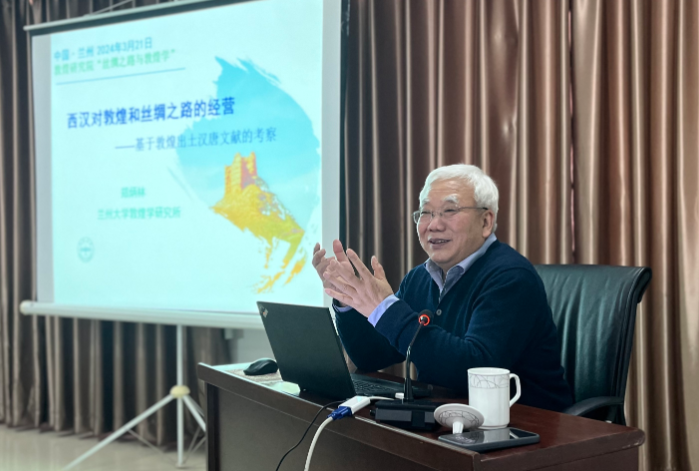 2024年3月21日下午,蘭州大學鄭炳林教授應邀在“絲綢之路與敦煌學”系列公益學術講座主講《兩漢對敦煌和絲綢之路的經營》。講座由敦煌研究院敦煌文獻研究所主辦,趙曉星研究員主持,在蘭州分院舉行。我院專家學者,蘭州大學、西北師范大學、西北民族大學師生,及敦煌學愛好者50余人現(xiàn)場參加了此次學術活動。