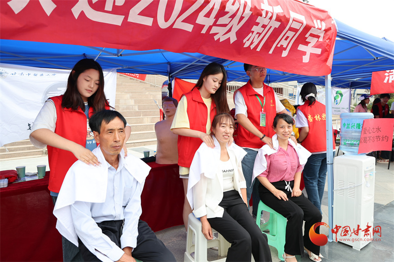 近水樓臺先得月,甘肅中醫(yī)藥大學校園社團依托中醫(yī)藥專業(yè)優(yōu)勢,在迎新點開設推拿按摩志愿服務,以專業(yè)手法解決新生和家長的旅途疲勞。