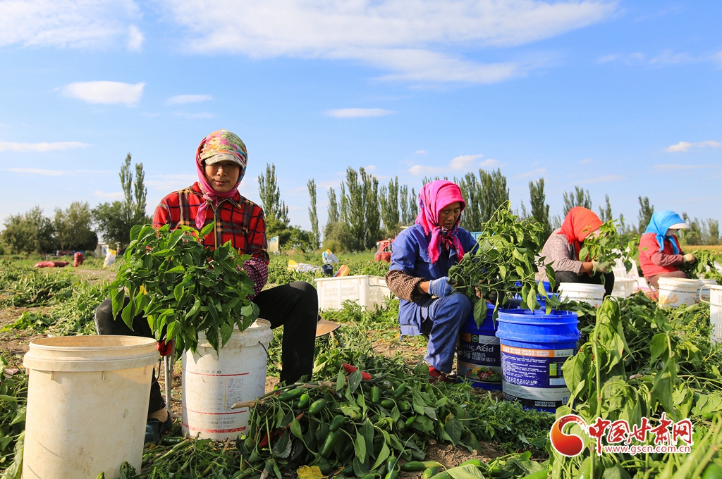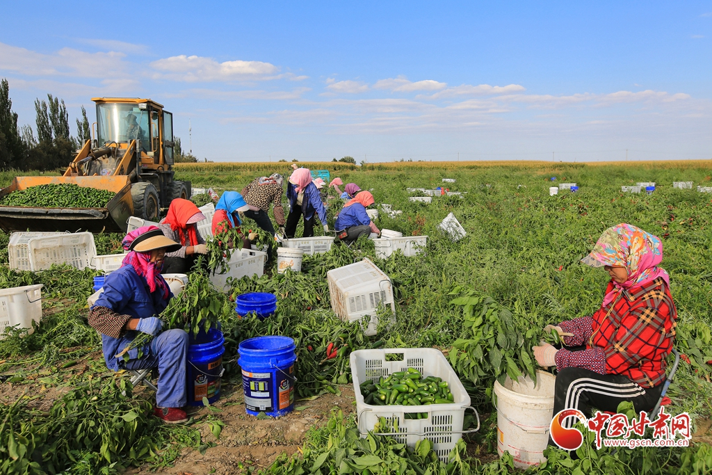 9月1日,嘉峪關(guān)市新城鎮(zhèn)長(zhǎng)城村一農(nóng)民專(zhuān)業(yè)合作社種植的子彈頭辣椒喜獲豐收,種植戶搶抓農(nóng)時(shí)采摘,農(nóng)用機(jī)械車(chē)輛穿梭于田間地頭,鄉(xiāng)村田野呈現(xiàn)出一派繁忙的景象。