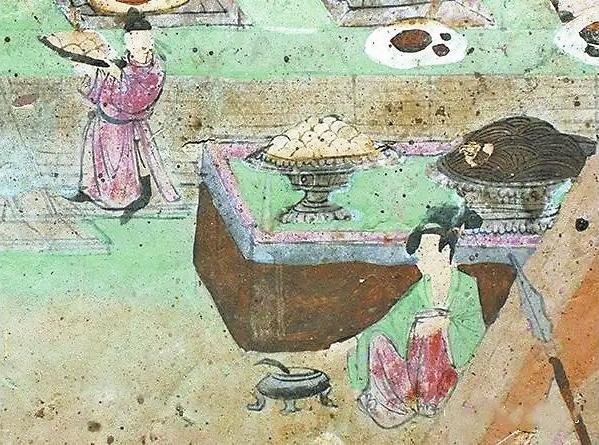 在唐宋時(shí)期的敦煌中秋日,祭祀了月神,接下來(lái)就該大快朵頤月餅了。但是這敦煌月餅與其他地方的月餅還是頗有不同?!都t樓夢(mèng)》中賈母吃的“內(nèi)造瓜仁油松穰月餅”,據(jù)考證是個(gè)直徑二尺、重十公斤的大月餅。而傳統(tǒng)的敦煌月餅在尺寸上也是毫不遜色呢!據(jù)史料記載,傳統(tǒng)敦煌月餅的食材多使用面粉與各種帶有顏色的植物,在形制上多呈現(xiàn)圓形,更像是一輪天上的圓月。其直徑足有三十厘米,也就是一尺左右,厚度也達(dá)到五厘米之多,肯定是為了分而食之,合而為圓。在敦煌人看來(lái),月餅越大,團(tuán)圓的希望就越大吧!同時(shí),人們還會(huì)在月餅上做出“嫦娥奔月”“玉兔搗藥”等與月亮有關(guān)的圖案,別有一番花好月圓的情趣。另外,據(jù)文獻(xiàn)記載,在唐宋時(shí)期的敦煌,除了中秋制作吃月餅外,家家戶(hù)戶(hù)還會(huì)制作另外一種更易于保存的圓形食品,那就是鍋盔了。鍋盔饃的外形猶如菊花,餅色發(fā)紅,皮薄如紙,饃體豐滿(mǎn),充滿(mǎn)了對(duì)中秋月圓人團(tuán)圓的美好希冀。