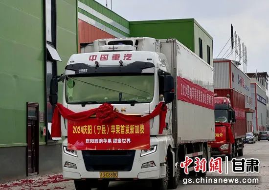 近日,甘肅慶陽(yáng)蘋果首次出口新加坡。圖為滿載25噸蘋果的貨車出發(fā)。