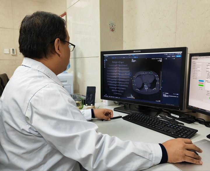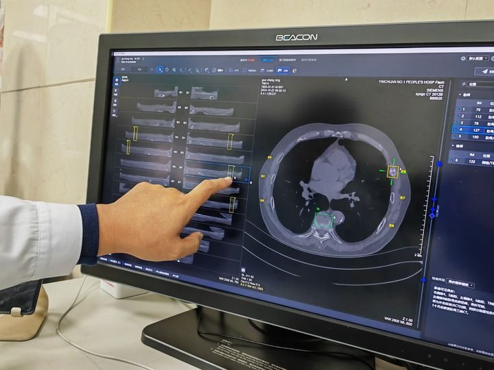 在寧夏回族自治區(qū)銀川市第一人民醫(yī)院,放射科副主任醫(yī)師姜榮興打開電腦上的人工智能輔助診斷系統(tǒng),導(dǎo)入病患CT影像資料后,輕點(diǎn)鼠標(biāo),系統(tǒng)瞬間完成初篩——24根肋骨逐一呈現(xiàn)在屏幕上,骨折和疑似骨折的部位一目了然。醫(yī)生再對初篩結(jié)果作出診斷處理,全程用時不到4分鐘。