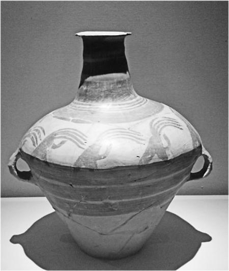 馬家窯類型長(zhǎng)羽舞蹈紋壺
