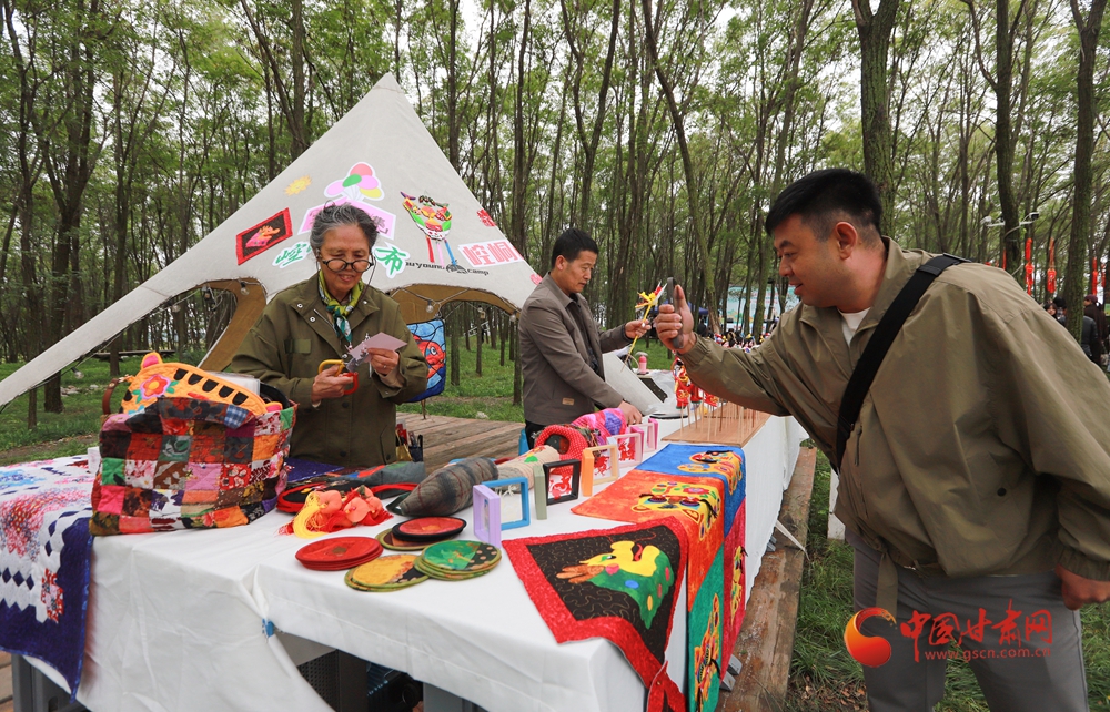 活動現場還設置了非遺展示區(qū)與美食品鑒區(qū),天津剪布、面塑與崆峒剪紙、泥塑等交相輝映,羊肉泡饃、釀皮、油馓子等鄉(xiāng)土美食香氣四溢,讓現場觀眾愛不釋手。