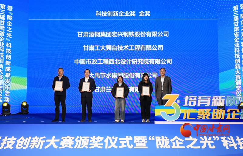 本屆大賽中,甘肅酒鋼集團宏興鋼鐵股份有限公司、中國市政工程西北設計研究院有限公司、大禹節(jié)水集團股份有限公司等企業(yè)摘得科技創(chuàng)新企業(yè)金獎。一批涉及高端裝備、新材料、新能源、生物醫(yī)藥、現(xiàn)代農業(yè)等領域的核心技術成果榮獲科技創(chuàng)新成果獎。國網甘肅省電力公司電力科學研究院趙金雄等來自企業(yè)研發(fā)一線的20位杰出科技工作者獲評“科技創(chuàng)新達人獎”,金昌市科學技術協(xié)會等6家單位獲優(yōu)秀組織獎。