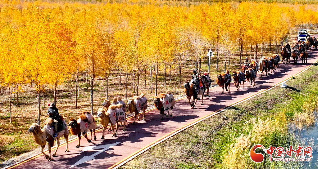 金秋十月,張掖市甘州區(qū)黑河林場(chǎng)萬(wàn)畝胡楊林迎來(lái)流金季節(jié)。10月15日,一支駝隊(duì)行進(jìn)其間,領(lǐng)略這最美的時(shí)光。這片昔日亂石林立、滿(mǎn)目瘡痍的黑河亂石灘,如今已成為6萬(wàn)畝的城市森林,游人、駝隊(duì)行進(jìn)其中,與金色林海共同構(gòu)成了一幅動(dòng)人的生態(tài)畫(huà)卷。