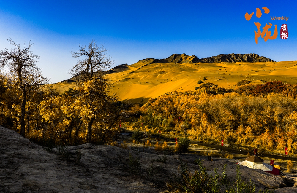 每年10月下旬,是多壩溝胡楊峽胡楊的最佳觀賞期。金黃色的胡楊,與周邊沙山、溪流交織成色彩斑斕的景觀,形成荒漠地帶獨(dú)特的生態(tài)畫卷。