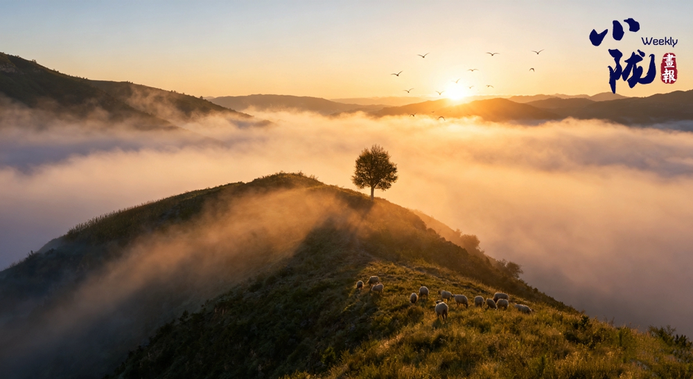 晨光初露時(shí),薄霧浮動于溝壑之間,黃土塬的輪廓在光線中起伏,與飛翔的鳥兒、走過坡地的羊群與塬面草色,構(gòu)成一幅絢麗的畫卷。