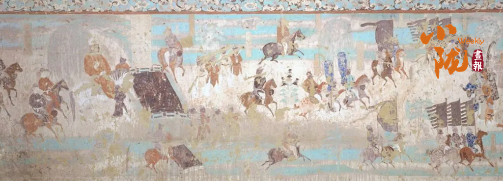 在甘肅璀璨的石窟藝術(shù)中,馬早已超越了具象的生靈,化作融入筆墨丹青的文化靈韻。莫高窟的壁畫里,馬的形象栩栩如生、各具風(fēng)情:西魏249窟的青藍色翼馬,肩生雙翼、身姿輕盈,與仙人并肩起舞,藏著古人對天空與自由的向往;晚唐12窟的作戰(zhàn)圖中,戰(zhàn)馬披甲馳騁、泅水掙扎,真實還原了古戰(zhàn)場的慘烈與悲壯;盛唐時期的駿馬畫像,體態(tài)雄壯、氣度軒昂,每一筆勾勒都藏著時代的審美與家國情懷。